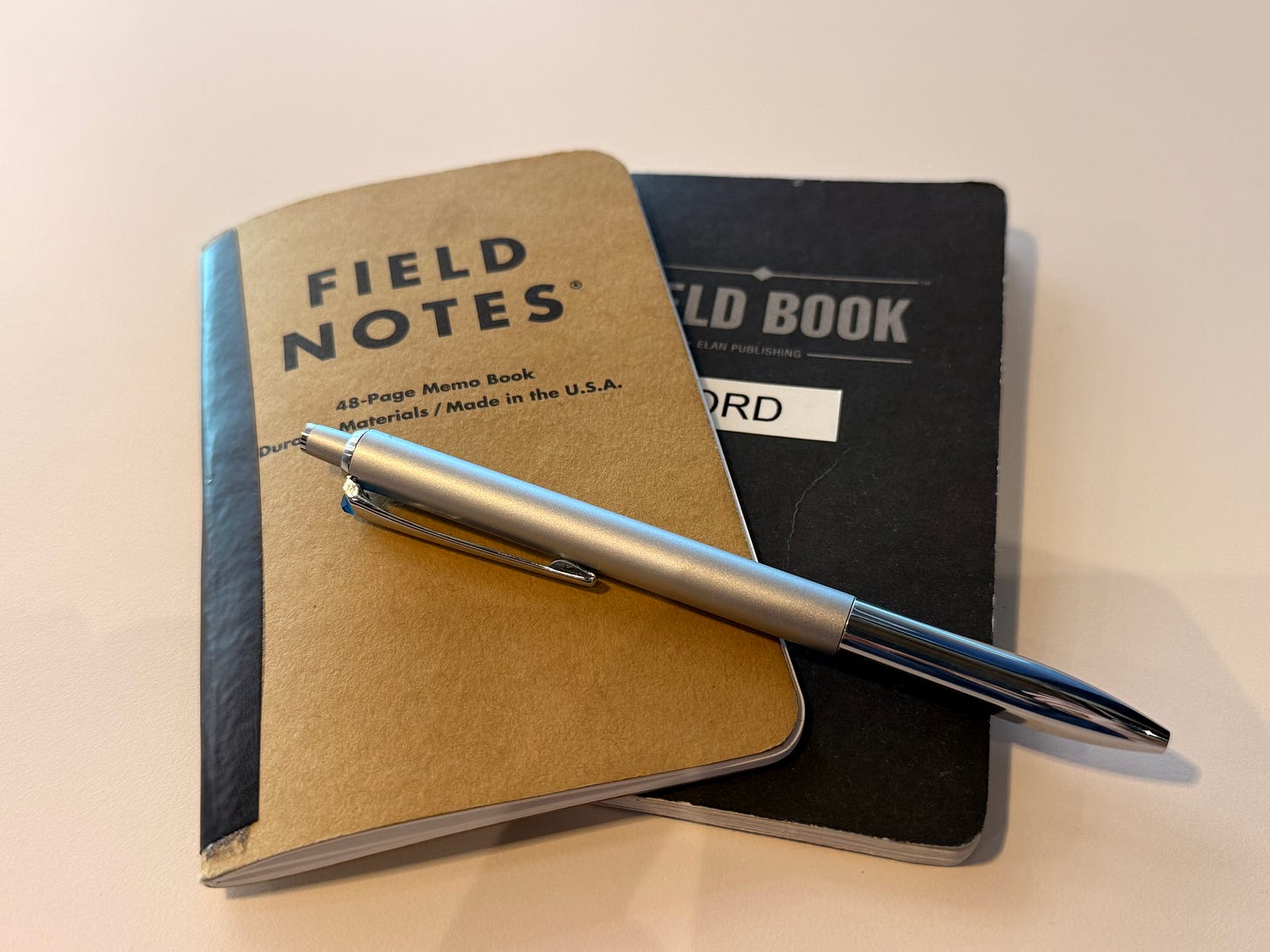 I landed on Field Notes as my tool of choice. I started using the off-brand Field Notes called “Field Book” by Elan Publishing on Amazon. They were $1–2 cheaper for a 3‑pack, but after comparing to Field Notes, I determined the cover feels a bit cheaper and the paper isn’t as enjoyable to write on. It’s subjective, and they’re perfectly fine for what they are — I’d even recommend them to someone interested in trying out pocket notebooks. I just enjoy the little bit of charm that Field Notes has with the branding, the use cases, the fun limited-release designs, etc., so I’m willing to pay the very slight premium.